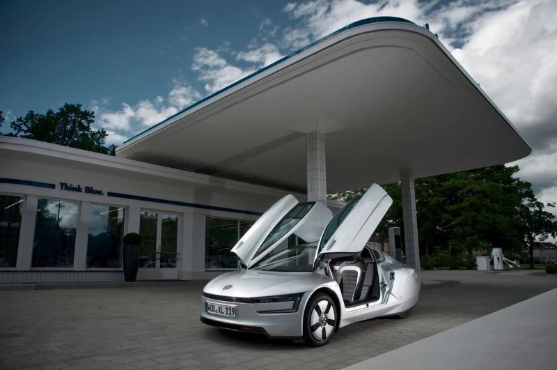 XL1は0-62mph(約99マイル/時)を12.7秒で加速し、最高速度は99mph(約150キロ/時)です。XL1は欧州走行モードで261マイル/ガロン(約261マイル/ガロン)という記録的な燃費を達成しており、これは米国走行モードでは推定200マイル/ガロン(約32マイル/ガロン)以上になります。27馬力の電気モーターを搭載したXL1は、排出ガスゼロで最大32マイル(約48キロ/ガロン)を走行できます。電気モードで1マイル(約1.6キロメートル)走行するのに必要なバッテリー電力は0.16kWhで、これはガソリン1ガロンあたり209マイル(約32キロ/ガロン)に相当します。