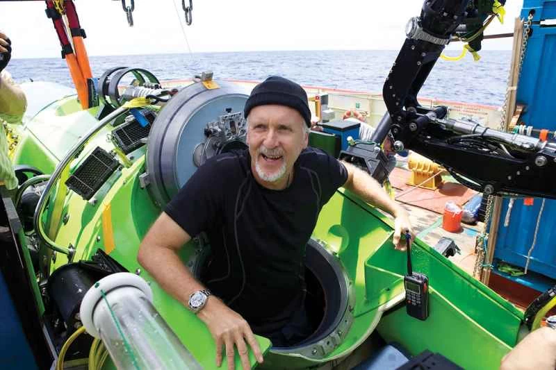 2012年3月下旬、グアム沖の西太平洋で、ライムグリーンの楕円形の潜水艇が水面を割った。近くの船、マーメイド・サファイア号のデッキでは、80人からなるサポートチームと撮影クルーが大歓声を上げた。チームは奇妙な姿をした潜水艇をウインチで引き上げ、ハッチを解放した。ドアが勢いよく開き、さらに大きな歓声の中、伝説のジェームズ・キャメロン監督が登場した。