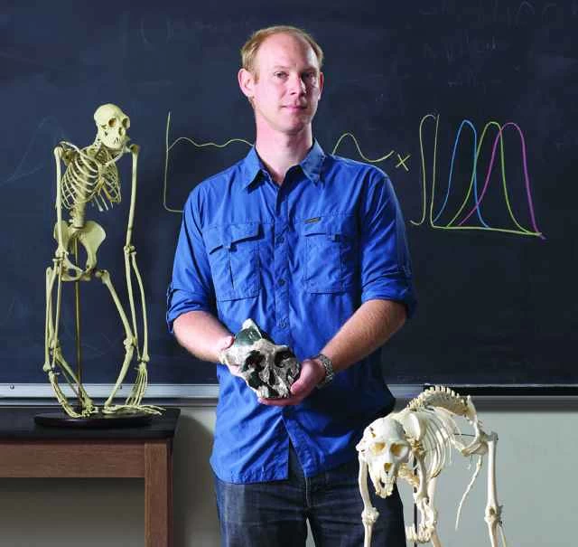 ネイト・ドミニーは、解剖学の教授たちとコスタリカへ大学の研究旅行に行った際に、天職を見つけました。ジョンズ・ホプキンス大学のフットボール選手だったドミニーは、木から落ちた小さな麻薬漬けのサルを捕まえるという、肉体的に過酷な任務を任されました。「動く標的を相手に、完全に意識を失わせ、手には網を持っているんです」と彼は説明します。翌年の夏に再びコスタリカを訪れたとき、彼はサルがどのように落ちたのかだけでなく、それ以上のことにも気を取られ、サルの歯を研究することで、彼らの食習慣を解明する手助けをするようになりました。「霊長類と人間の適応と行動を考える上で、食物と食生活の重要性をすぐに理解することができました」と彼は言います。「毎分毎分が本当に楽しかったです。」