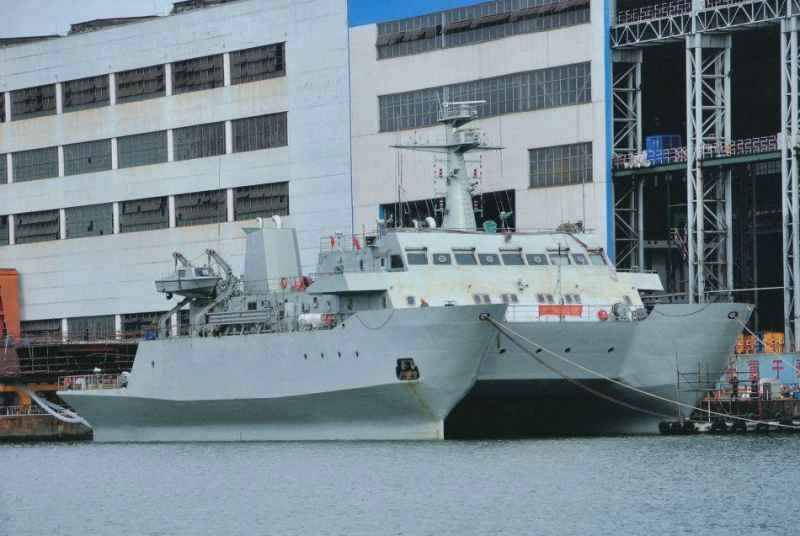 232は、旧型の「992」偵察艦や022型ステルスミサイル艇と同様に、小型水面幅双胴船(SWATH)型双胴船です。これは、2つの船体が水面よりも水面下ではるかに広いことを意味します(2隻の潜水艦の上にボートが横たわっているようなイメージです)。従来の2つの船体を搭載した双胴船と比較して、SWATH型はより安定性に優れています。232は全長約55メートル、全幅約20メートルです。排水量は約2,000~2,500トンで、5,300トンのUSNSインペッカブル(2009年に中国の海上法執行艇と係争を起こした)よりも小型です。
