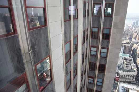 現在、1,340万ドル規模の大規模なエネルギー改修工事により、エンパイア・ステート・ビルのエネルギー消費量は40%近く削減され、今後15年間で温室効果ガス排出量は10万5,000トン削減されるとともに、年間エネルギーコストは440万ドル削減される予定です。私たちは、この大規模かつ意義深いプロジェクトがどのようなものなのか、その様子を実際に見学しました。まずは、エンパイア・ステート・ビル5階の目立たない一角から見ていきましょう。そこでは、20年前のガラスが未来のお金へと生まれ変わっています。