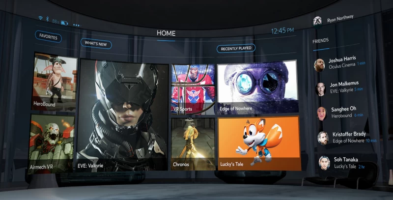 Oculus Riftには、VRアプリケーション用のホーム画面である「Oculus Home」と呼ばれる独自のソフトウェアも付属します。これはXboxのホーム画面に少し似ています。ユーザーはそこからゲームを起動したり、デモを体験したりできます。