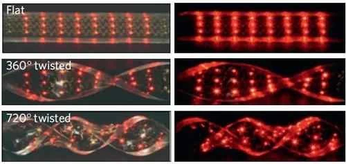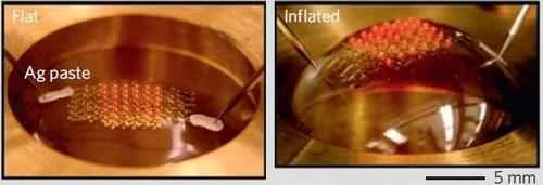 しかし、イリノイ大学の研究者ジョン・ロジャース氏が指摘するように、LEDは脆く、さまざまな形に曲げることができません。ところが、彼の新しい発明のおかげで、もう問題は解決しました。彼とチームは、ペン先よりも小さな極小のLEDをフレキシブル電子シートに搭載しました。このシートは、LEDの機能を損なうことなく最大720度まで伸縮可能で、石鹸水や皮膚の下にも耐えることができます。彼らはマウスの皮膚の下にシートを1枚埋め込むことで、この耐久性を実証しました。