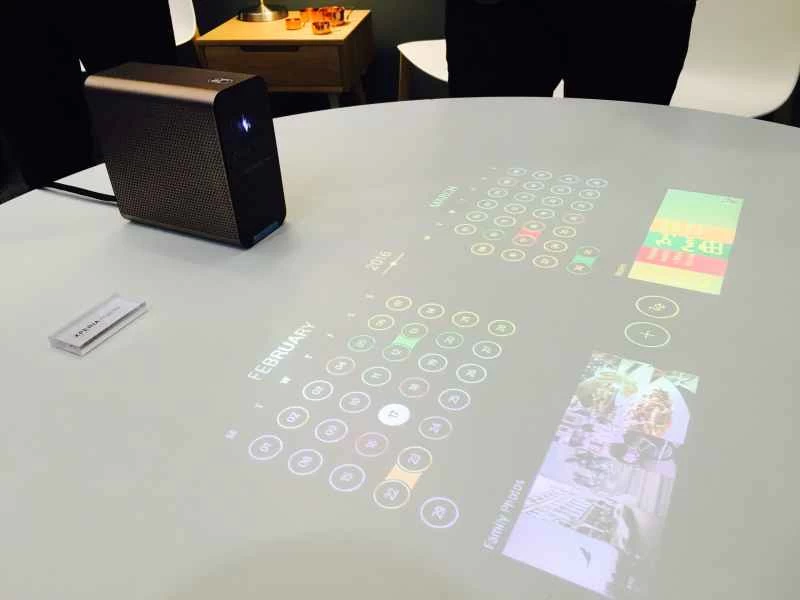 Xperiaプロジェクターは、あらゆる表面をコンピューターに変えるデバイスです。壁やテーブルの上に置くだけで、目の前の平らな面にカレンダー、時刻、連絡先情報などを表示できます。ソニーのXperiaプロジェクターは白い表面で動作し、テーブルや壁へのジェスチャーに反応して、タッチや音声をシミュレートします。