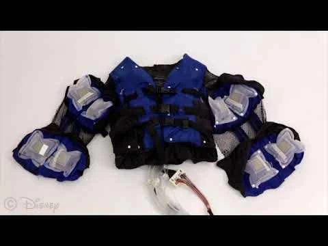 ディズニー・リサーチの「フォース・ジャケット」は、このギャップを埋めることを目指した衣服だ。ライフジャケットを改造したこのプロトタイプは、内蔵エアバッグが膨張、収縮、さらには振動することで、着用者に文字通り「触れられている」という感覚を与える。VRソフトウェアと組み合わせることで、蛇が這い寄ってくるといった奇妙な体験から、雪玉に当たるといったもっとありふれた体験まで、様々なシミュレートが可能になる。つまり、実際の体で感じる触覚を、バーチャルの世界で再現できるのだ。(このデバイスは研究プロジェクトの成果であるため、ライフジャケットのような衣服はAmazonで販売されているわけではない。また、VRに触覚技術を取り入れることに焦点を当てた研究は、これが初めてではない。)