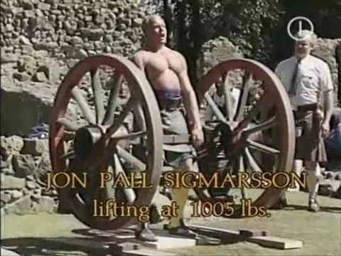 1987年、スコットランドで開催されたストロングマン大会「ピュア・ストレングス」で、伝説のストロングマンアスリート、ヨン・パル・シグマーソンは、太い木の支柱でつながれた巨大な荷馬車の車輪2つでできた重さ1,005ポンド(約450kg)の装置を持ち上げることに成功しました。重りを下ろす前に、彼は観客席を見渡し、顔は真っ赤に、筋肉は隆起していました。「デッドリフトができないなら、生きている意味がない」と叫んだのです。これは、重量挙げ界における最も純粋な力の尺度の一つにふさわしい賛辞でした。