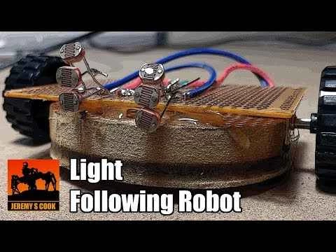 下の動画で紹介されている「ロボット」は、私が作った方法です。私のやり方をステップバイステップで真似してもいいですし、3Dプリンターなどで丁寧にデザインしたものを作ってもいいですし、手元にある工具と材料でとりあえず作ってみて、どうなるか試してみるのもいいでしょう。車輪で装置を転がすことができれば、懐中電灯の光を追う楽しいロボットが完成します。フレームは木材、プラスチック、段ボールなど、手に入りやすい材料で作ることができます。