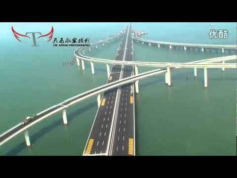 中国の労働者たちは、両側から始めて中央で合流するという、4年をかけてマラソンのような速さで橋を建設した。中国国営メディアによると、この橋は5,200本の柱で構成され、費用は少なくとも23億ドルに上る。