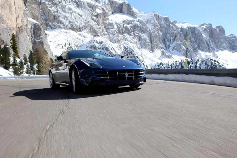 イタリア、ブルニコ発― 雪に覆われたKマートの駐車場でも十分だっただろう。しかし、ここはフェラーリ、そしてその主役である伝統を打ち砕くFF(30万ドルの四輪駆動ステーションワゴン)なのだから、高高度でのちょっとした見せびらかしは当然だろう。そこでフェラーリは、イタリア軍のチヌーク・ヘリコプターの支援を受け、2機のFFを、風の強いドロミテ山脈にある人気スキーリゾート、プラン・デ・コロネスの山頂まで飛ばし、我々に試乗を勧めた。とんでもない話?もちろん、その通りだ。しかし、時速332キロ、651馬力のイタリアのポニーが、ポモナ・フリーウェイの雪、氷、土、水たまりの上を安全に疾走しながら、長身の大人4人と荷物を乗せることができるのと比べれば、とんでもない話ではない。