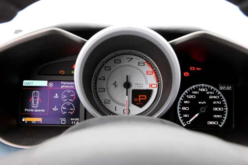この車の多くの技術と同様に、マネッティーノはフェラーリのF1レーサーから受け継がれています。ドライバーのあらゆる操作と路面状況(良好、普通、あるいは危険な状態)を感知、分析し、反応する、いわばヒューマンマシンインターフェースの中枢と言えるでしょう。