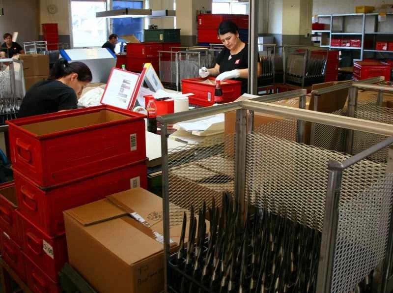 最後にナイフは洗浄され、品質保証担当の女性たちの厳しい検査へと送られます。欠陥がなければ(欠陥の可能性を示す大きな写真集があります)、梱包され、誰かのキッチンへと送られます。