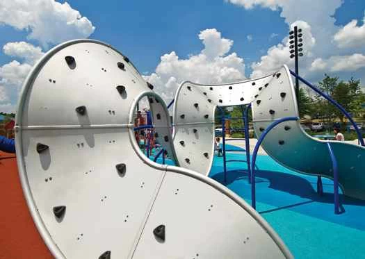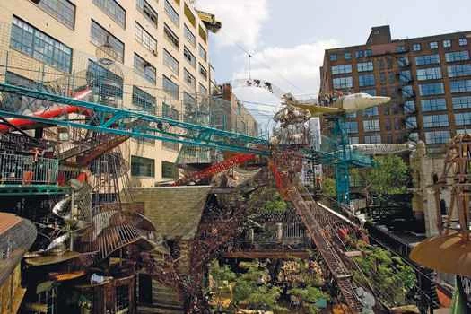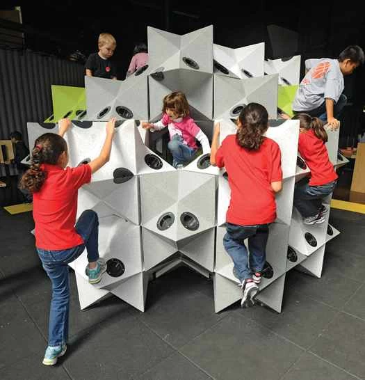 遊び場は子供たちの時間を奪い合い、敗北を喫しています。9歳から13歳までの子供の約25%は、身体活動のための自由時間がなく、子供がビデオゲームをする確率は自転車に乗る確率の6倍です。未来の遊び場は、どんなに魅力的なバーチャル空間でさえ提供できないもの、つまり、バーチャル空間に劣らず魅力的に見える現実空間を提供しなければなりません。建築家やデザイン会社は、バーチャル化に真正面から取り組むことで、遊び場を刷新しています。これらの空間は複雑で魅力的であり、中にはボタンを押すためのボタンが設置されているものもあります。