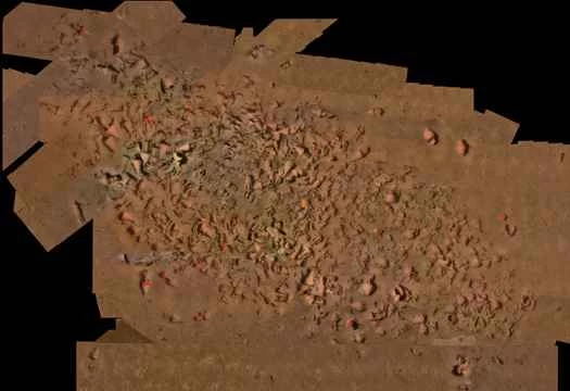 紀元前4世紀のこの沈没船のような古代の沈没船は、ほとんどがアンフォラの残骸に過ぎませんが、それでも膨大なデータが含まれている可能性があります。沈没船が特定されると、ダイバーはNikon D100とD300のカメラで現場の写真を何百枚も撮影します。これらの写真はモザイク状に合成され(上図)、沈没船の位置と深度に関する情報がタグ付けされます。