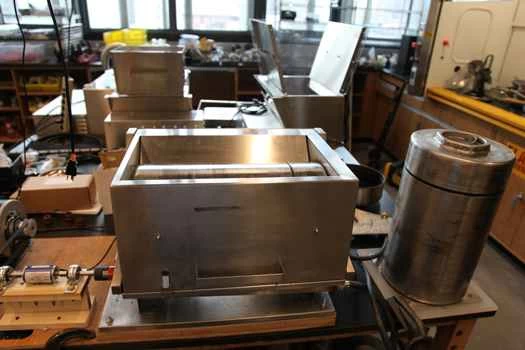 しかし、研究室にはクーラー以外にもたくさんのものがあり、学生たちはそれらすべてに取り組んでいます。彼らは通常、製品開発に関する論文を書いています。そのためにクーパークーラーの改良が必要になるとしても、それはそれで構いません。もちろん、他にも選択肢となるプロジェクトはたくさんありますが。今、彼らは商業部門への進出も始めています。チームは、スープを瞬間冷却するメカニズムを開発しました。5ガロン(約2.3リットル)を6~8分で冷却することで、FDA(米国食品医薬品局)の規制をより容易に遵守できるのです。スープはタービン型の金属片の中に入れられ、回転しながらその上にバケツに入った氷が流れていきます。