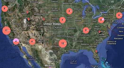 こちらからインタラクティブなコンテンツをご覧いただけます。テキサス州にズームインして iPad プロセッサのメーカーを探し、ケンタッキー州にパンすると Apple のガラスを製造しているメーカーがわかります。