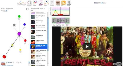 例えば、Fキーで演奏していて、FメジャーからAマイナーコードに移行する場合、ポピュラーソングでは67%の確率でDマイナーコードが続きます。ビートルズの「A Day In The Life」やモデスト・マウスの「Float On」もこの進行に従っています。(進行を実際に聞いてみたい方は、Hook Theoryのサイトで曲を再生できます。)
