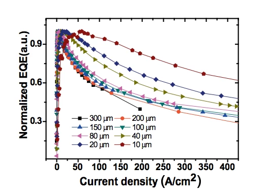 近日発行のPhysical Review Letters誌に掲載される彼らの研究は、このドループの原因がオージェ再結合と呼ばれる非放射性プロセスであることを特定した。これは熱を生成するプロセスである。UCSBでの以前の研究では、オージェ再結合が原因である可能性が示唆されていたが、この効果を決定的に測定した研究はこれが初めてである。