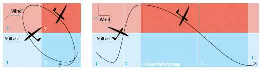 3.グライダーは方向転換して風下に向かって飛行し、飛行するにつれて距離を稼いでいきます。