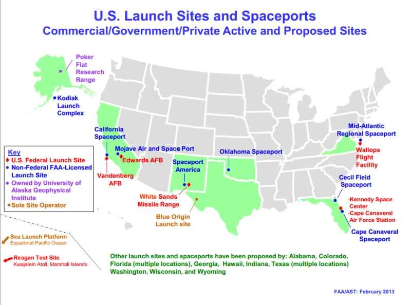 宇宙へ行くのはますます容易になっています。大気圏外でのほんの数分間の滞在と引き換えに、莫大な現金を惜しまない方のために、連邦航空局が2月に公開した全米宇宙港の便利な地図をご紹介します。
