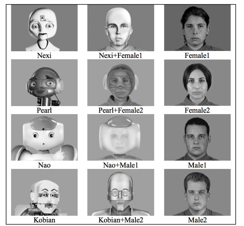 この研究には、18歳から23歳の大学生32人と、65歳から75歳の成人32人が参加した。研究者らはアンケートを通じて、研究のさまざまな時点での参加者のロボット全般に関する意見(「ロボットを使用すると日常生活が楽になる」)、ロボットの外見のあり方(「ロボットに目が欲しい」)、ロボットに対する慣れ親しんだ度合いについて質問した。最初に、参加者は意見アンケートを受けた。その後、家庭用ロボットの候補をいくつか見せられ、お気に入りを選ぶように求められた。選択肢は、非常にロボットっぽいロボット、より人間っぽいロボット(人間とロボットロボットの組み合わせ)、非常に人間っぽいロボット(実際には人間の写真だけ)に絞り込まれた。最後に、参加者は3つの中からお気に入りを選ぶように求められた。