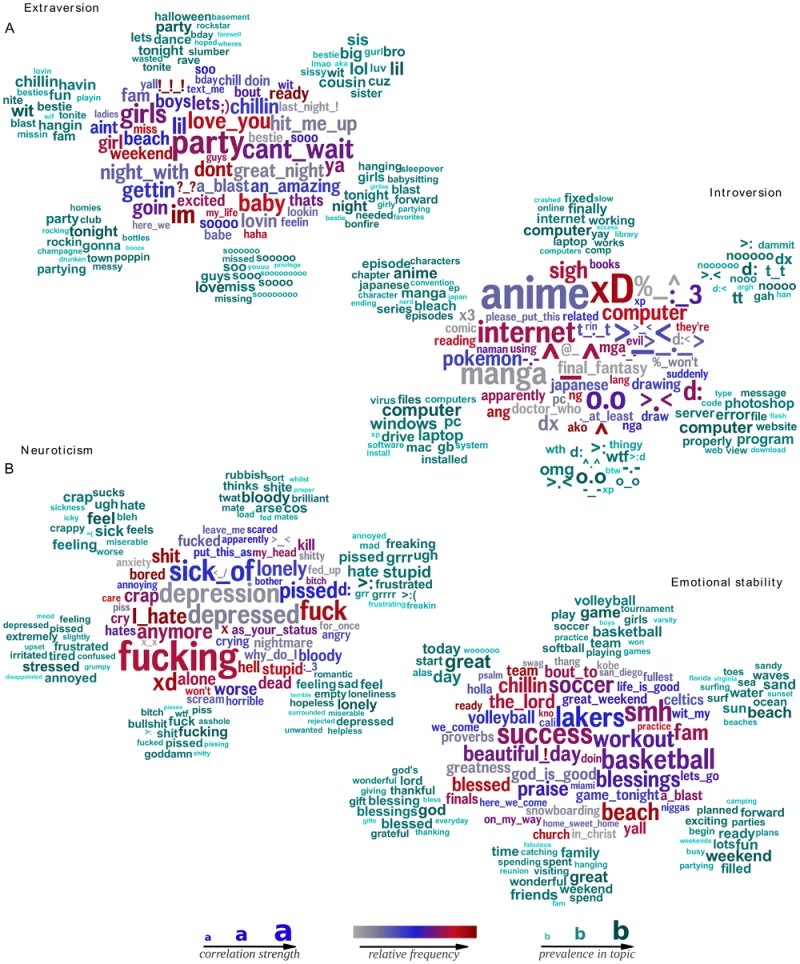 最後に、研究者たちはボランティアに性格テストを受けてもらい、彼らが使った言葉を、外向性や神経症傾向などの性格特性の尺度でどこに当てはまるかと比較した。
