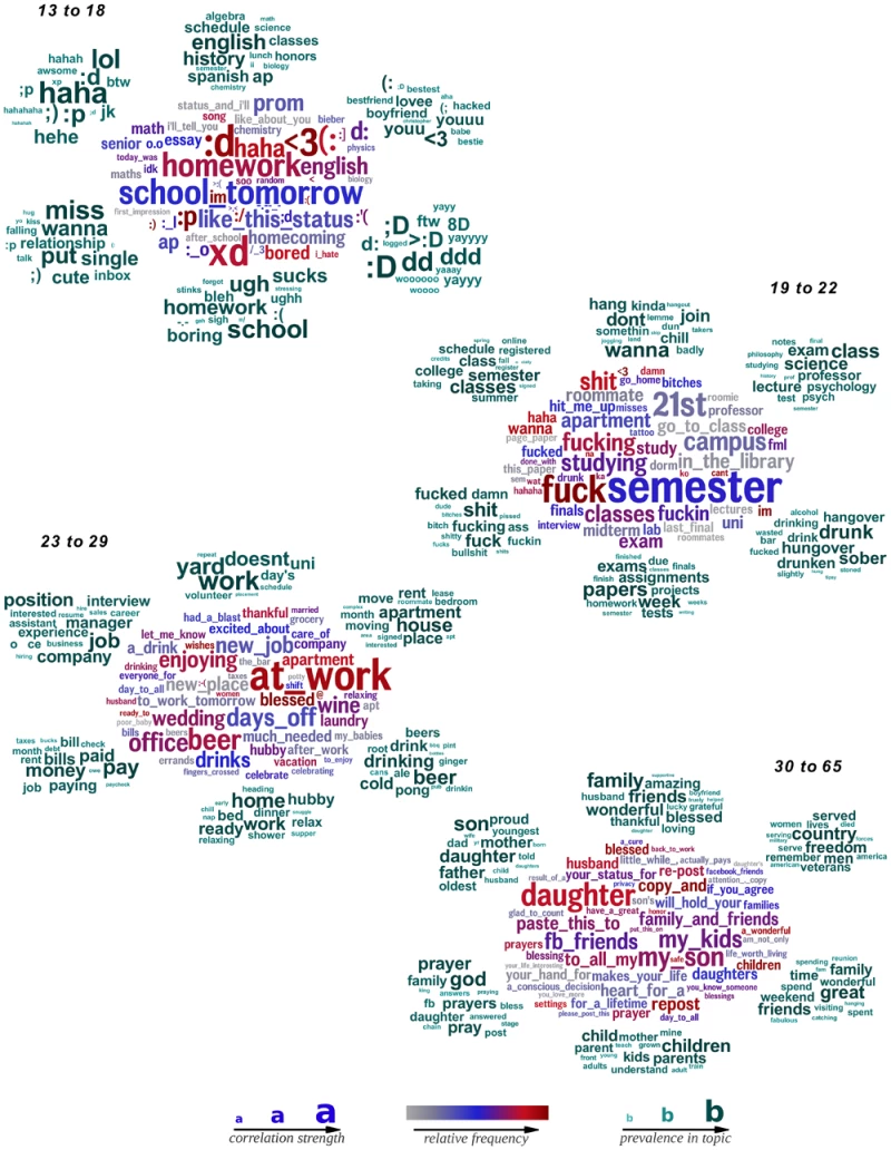 彼らはまた、年齢層別の単語の使用状況も調べました。