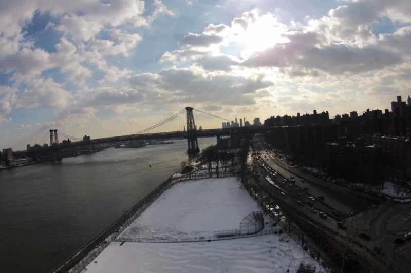 統合カメラ:航空写真撮影用に、Vision に統合されたジンバル カメラは十分な性能を備えています。さまざまな解像度とアスペクト比 (1080/p30 または 1080/60i の HD) で動画を撮影でき、最大 14 メガピクセルの静止画も撮影できます。これは、はるか高所から広大なパノラマを撮影するために設計されたリグです (高度 350 フィートあたりで iPhone とカメラの間の Wi-Fi 接続が失われる傾向があることがわかりましたが、干渉の多いマンハッタンにいたことが関係している可能性があります)。パンは機体自体を回転させることによって制御され、電動ジンバルにより、パイロットは DJI アプリ インターフェースのタッチスクリーン コントロールを介して 60 度の傾斜を行うことができます (シャッター ボタン、動画録画ボタン、その他のカメラ制御機能も同じ場所にあります)。このアプリ インターフェースでは、画像と動画の管理も簡単です。 Phantom 2 Vision は画像とビデオのファイルをローカルの microSD カードに保存しますが、DJI アプリを使用すると、ユーザーはすべての画像とビデオをワイヤレスでモバイル デバイスに移動できます。