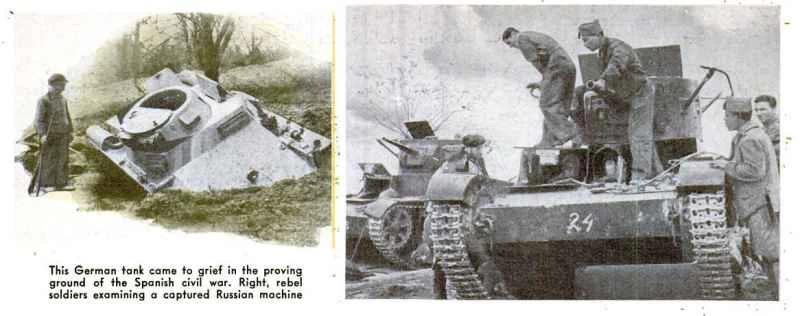 1938年の記事「新型戦争機械の性能はいかに?」で、ポピュラーサイエンス誌は「最新兵器の真価を試す試験管内戦」を取り上げました。中でも最も重要なものの一つが、民主的なスペイン共和国とファシスト政党の国民党の間で戦われたスペイン内戦です。重要なのは、両陣営に強力な外国の支援があり、共和国はソ連、国民党はドイツに支援されていたことです。スペインでは、ソ連とナチスが実戦で戦車をテストしました。