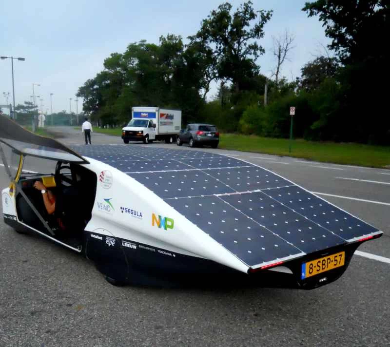 平らな屋根、つぶれた涙滴型、低い車高から「ショールームに展示できるファミリーカー」という印象は受けないが、デトロイトで開催された2014年ITS世界会議で私が見たステラは、確かに世界初の4人乗り太陽光発電車だ。