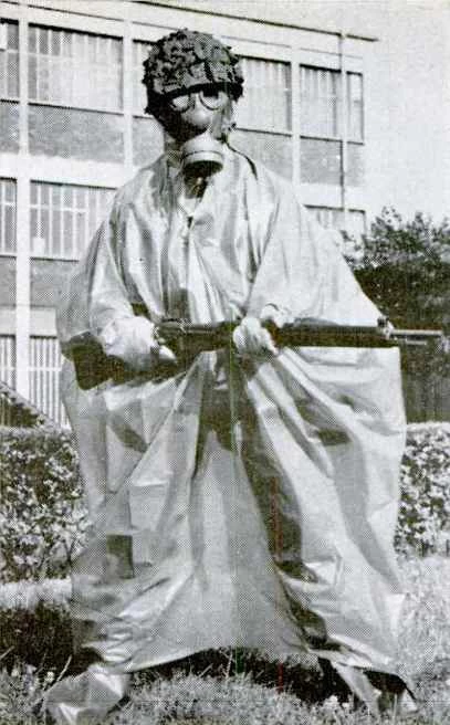 フランス軍が放射能汚染地域での戦闘用にこの核兵器防護服を発表したことで、パリのファッション業界は最悪の状況に陥った。ゴミ袋のようなポンチョが放射線を反射する効果を証明することはできないが、つまずく危険性は高そうだ。