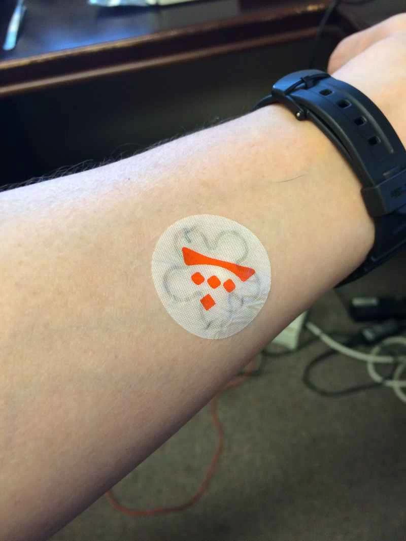 ジョン・ロジャースの前腕には、25セント硬貨ほどの大きさのパッチが貼られている。まるで、小さな砂ドルのように見える子供のタトゥーを彷彿とさせる。しかし、イリノイ大学アーバナ・シャンペーン校のエンジニアであるロジャースが実際に身につけているのは、「パスワードや医療IDなど、約100キロバイトのデータを無線で送受信・保存できる」電子機器だと彼は言う。