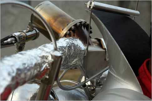 最も狂気じみた改良:排気マニホールド。ホーはターボの動力効率を上げるために自ら設計し、溶接した。彼は