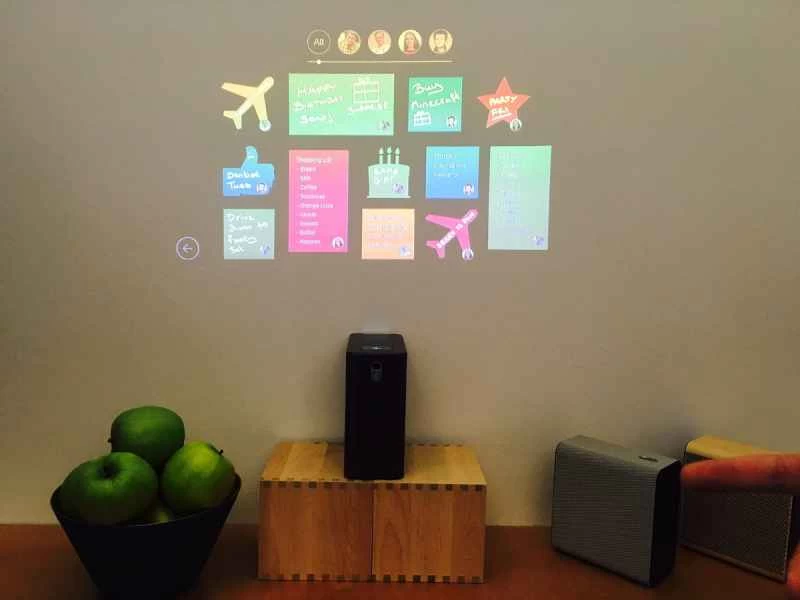 Xperiaプロジェクターは、あらゆる表面をコンピューターに変えるデバイスです。壁やテーブルの上に置くだけで、目の前の平らな面にカレンダー、時刻、連絡先情報などを表示できます。ソニーのXperiaプロジェクターは白い表面で動作し、テーブルや壁へのジェスチャーに反応して、タッチや音声をシミュレートします。