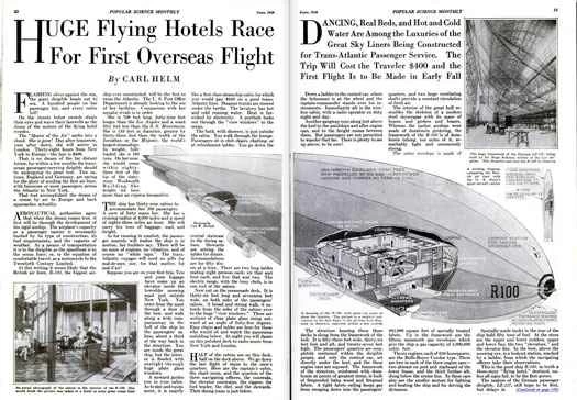 この10年は画期的な進歩、超高層ビルの係留マストの登場で幕を開けました。それまで飛行船は危険な地上着陸を余儀なくされ、何百人もの乗組員と高価な格納庫の調整が必要でした。係留塔があれば、乗客が下船する間、飛行船は係留塔に簡単に固定できるため、この作業は大幅に短縮されます。いつの日か、尖塔とそびえ立つターミナルを備えたアメリカの超高層ビルの上空を、飛行船の群れがホバリングするようになるかもしれません。