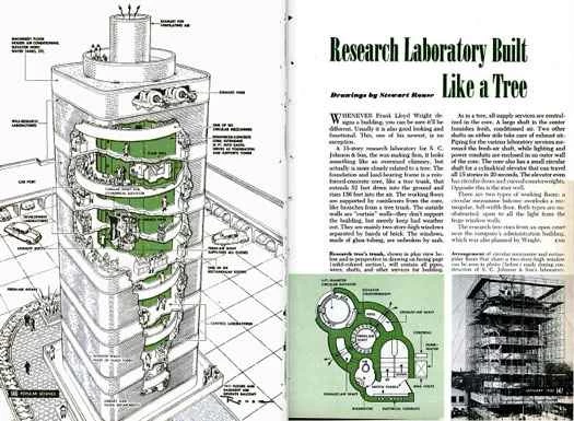 中には、より文字通りの意味を持つ例もあります。フランク・ロイド・ライトはSCジョンソン・アンド・サンズ研究所の設計を木をモチーフにしていますが、外観は典型的なミニマリズム建築の威厳ある構造に見えます。一方、バーニー・コネットの魚型潜水艦は、鱗、飛び出た目、パドル状の尾など、すべてにおいて魚そのもののように見えます。