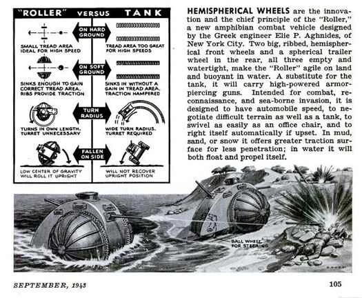 一方、フランク・T・コートニー大尉は1932年、水上機の車輪を無限軌道に置き換えることを提案しました。そしてまさに予言通り、軍が採用する多くの水陸両用車両は、ジープではなく戦車から着想を得ています。このギャラリーで紹介した車両の中で、軍用水陸両用車は現代の水陸両用車を最も彷彿とさせます。しかし、実用的な戦車が1つある一方で、ブレード付きの船体と飛行機のプロペラを備えた北極艦や、半球形の車輪を備えたゴツゴツとした戦闘車両も存在します。