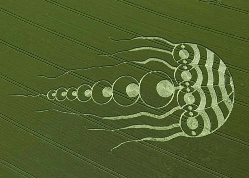現代の人々の集合的想像力では、ミステリーサークルは、通常、宇宙人か巨大な人間の陰謀、あるいはその両方に起因すると考えられています。サークルを観察する人の中には、その模様は滑走路か、あるいは宇宙からの何らかの通信ではないかと考える人もいます。また、ミステリーサークルは政府の秘密実験の結果、あるいは衛星やドローンに情報を伝えるための秘密の暗号ではないかと主張する人もいます。