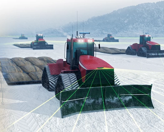 先導車両:搭載コンピューターが燃費を最大化するための最適な速度と方向を決定し、その情報を他の車両に伝達します。アルゴリズムが物体の「脅威」を判断し、それに応じてトラクターのルートを変更します。