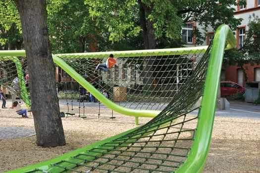 遊び場は子供たちの時間を奪い合い、敗北を喫しています。9歳から13歳までの子供の約25%は、身体活動のための自由時間がなく、子供がビデオゲームをする確率は自転車に乗る確率の6倍です。未来の遊び場は、どんなに魅力的なバーチャル空間でさえ提供できないもの、つまり、バーチャル空間に劣らず魅力的に見える現実空間を提供しなければなりません。建築家やデザイン会社は、バーチャル化に真正面から取り組むことで、遊び場を刷新しています。これらの空間は複雑で魅力的であり、中にはボタンを押すためのボタンが設置されているものもあります。