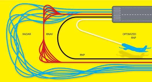 2000年代初頭まで世界中で主流だった旧式のVORベースの航法では、ある地点から次の地点までを結ぶ「航空路」の幅は8~10マイル(約16~16キロメートル)でした。これは、長距離飛行における航空機の許容誤差でした。現在、航空機が飛行できる経路(離陸時には大都市の騒音に敏感な地域を避けるため、降下時には遠隔地や困難な着陸地点に向かう途中の丘や塔を避けるため)の誤差は、翼幅1~2インチ(数万フィートではなく数百フィート)程度です。