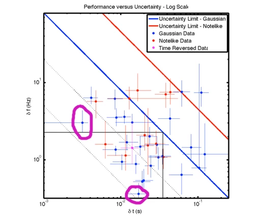 人間の耳が音声圧縮アルゴリズムの理論的な限界を識別できるほど正確かどうかを検証するため、ニューヨーク市ロックフェラー大学の物理学者ジェイコブ・N・オッペンハイムとマルセロ・O・マグナスコは、被験者に音を聞かせました。研究者たちは、被験者が音のタイミングと周波数の違いを区別できるかどうかを調べたかったのです。この研究の基本的な根拠は、MP3コーデックなど、ほぼすべての音声圧縮アルゴリズムが、人間の聴覚システムの仕組みを科学者が詳細に理解するずっと前から開発された線形予測モデルに基づいて信号を外挿しているという点です。この線形モデルは、音のタイミングと周波数には特定のカットオフ限界があるとしています。つまり、ある時点で2つの音の周波数または時間が非常に接近し、人間は違いを聞き取れないということです。さらに、時間と周波数は関連しており、一方の軸(例えば時間)の精度が高くなると、もう一方の軸の精度はそれに応じて低下します。人間の聴覚が線形規則に従うのであれば、高品質のファイルと元の録音の間で品質の劣化は聞こえないはずです (十分に高いサンプリング レートが与えられている場合。192kbps のひどいリッピングの話ではありません)。