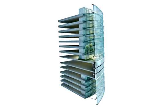 このタワーは2つのガラスファサードが重なり合っており、いわばチューブの中にチューブが1つある構造です。その間の空間は3フィートから33フィート(約9メートル)あり、光あふれるスカイロビーを設けるだけでなく、魔法瓶のような断熱効果も発揮するため、建物の冷暖房の必要性が軽減されます。超高層ビルにおけるエネルギー消費量の削減は環境に優しく、経済的にも実現可能です。ゲンスラーは、この省エネ技術によって、年間のエネルギー消費量を2025年までに2026年までに2027年までに2028年までに2029年までに2029年までに2030 ...