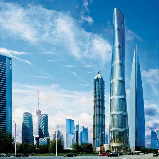 上空から見るとギターのピックのように見えるこのタワーは、1階ごとに約1度ずつねじれながら上昇します。このねじれた形状は、ビルを周回する風の流れを減速させ、超高層ビルが風で激しく揺れる原因となる渦の発生を抑制します(これは、指で挟んで息を吹きかけると草の葉が振動するのと同じです)。縮尺模型を使った風洞実験では、このねじれた形状によって横方向の力が24%軽減されると予測されており、これは次の台風が上海を襲った際に決定的な効果を発揮するでしょう。