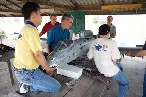 水浸しの水田は足元が柔らかく、踏み心地は悪くないかもしれないが、時速200マイル(約320キロ)で飛ぶ飛行機を着陸させるには、決して良い場所ではない。タイのバンコク近郊の荒れたアスファルト滑走路で、幅3メートル、重さ65ポンド(約30キログラム)の手作り模型A-10ウォートホッグが初離陸を開始するのを見守るマイク・セルビーの表情は、まさにそんな理由の一つに過ぎない。1万2000ドル以上を費やし、ほぼ1年かけてこのラジコンジェット機を製作・構築したセルビーは、滑走路脇に立ち、ジーンズのベルトループに親指を引っ掛け、キューバ産の葉巻を吸いながらリラックスした様子を装っている。しかし、足を踏み鳴らすのをやめられない。彼の隣では、エアフォースワンからU2偵察機まであらゆる航空機を操縦した経験を持つ、米空軍将軍でテストパイロットのレイ・ジョンズパイロットが、不安げにガムを噛みながら、首からぶら下げた操縦卓の重みに背を預けている。