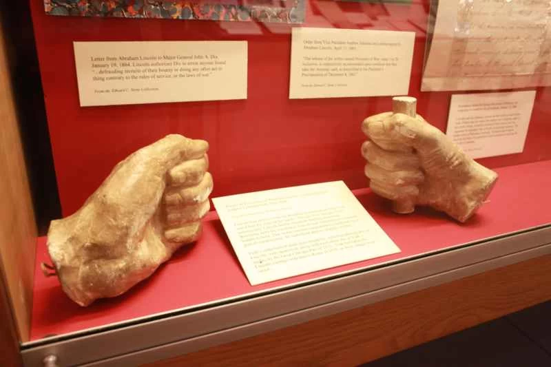 ボストン大学のムガー記念図書館では、アメリカ南北戦争の遺品展を開催しています。8月末まで開催されるこの展覧会は、奴隷解放宣言発布150周年を記念するものです。今後数週間ボストンにお越しいただけない方のために、展示品の一部をご紹介します。これらの展示品は、南北戦争に関する様々な興味深い疑問に答えてくれますが、中でも特に「エイブラハム・リンカーンの手は本当にそんなに大きかったのか?」という疑問が浮かび上がります。はい、確かにそうでした。